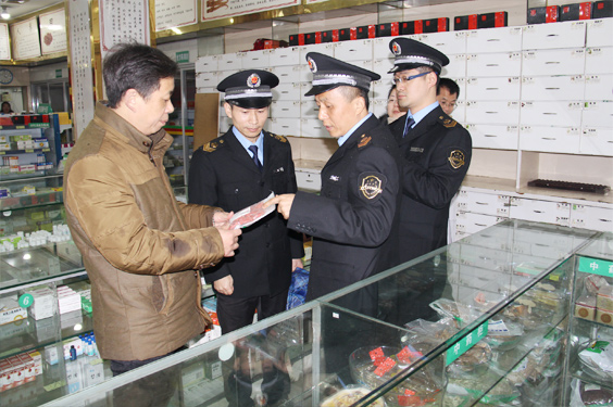 圖為執(zhí)法人員在一家藥店檢查。楊進 凌正方 攝影報道