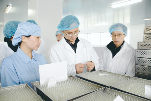 近日,云南省藥品監(jiān)督管理局局長(zhǎng)劉本軍(前排中)一行來(lái)到云南植物藥業(yè)有限公司,深入無(wú)菌制劑車間、口服制劑車間、質(zhì)量研發(fā)部門,了解企業(yè)藥品生產(chǎn)情況,并就企業(yè)發(fā)展過(guò)程中面臨的困難和問(wèn)題進(jìn)行座談交流。本報(bào)記者 李江映 攝