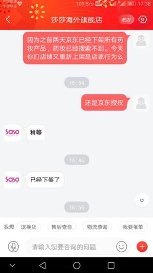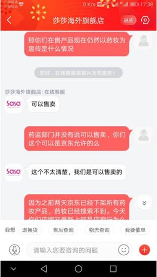 1月20日16時(shí),記者在京東平臺(tái)搜索"藥妝"關(guān)鍵詞,確實(shí)存在一些"藥妝"產(chǎn)品,涉及莎莎海外旗艦店、CREVIO海外專營(yíng)店、惠萊美妝海外專營(yíng)店三家店鋪。隨后,記者聯(lián)系了莎莎海外旗艦店的客服,其店客服人員先是稱,藥妝產(chǎn)品可以售賣。在記者追問是京東授權(quán)還是商家自主行為時(shí),客服在十五分鐘后回復(fù)"已經(jīng)下架了"。隨后記者在京東平臺(tái)再搜索"藥妝"關(guān)鍵詞,已經(jīng)無莎莎海外旗艦店的產(chǎn)品。