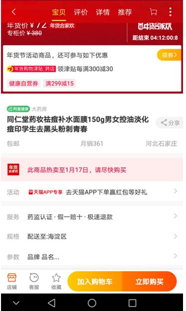 不過在天貓、淘寶網(wǎng)上,仍有大量"藥妝""EGF"產(chǎn)品正常銷售。當(dāng)日20時(shí),記者在阿里健康官方自營(yíng)店阿里健康大藥房中看到了"同仁堂藥妝祛痘補(bǔ)水面膜"的標(biāo)題描述。20點(diǎn)07分致電天貓官方,其負(fù)責(zé)人稱24小時(shí)內(nèi)由專人給予回應(yīng),并表示會(huì)催促其回復(fù)。