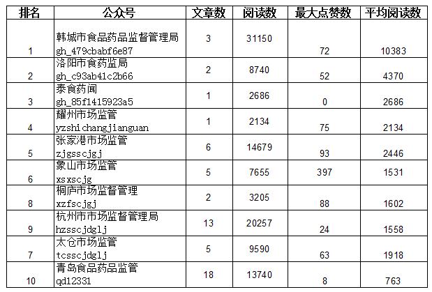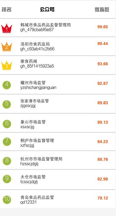 食藥監(jiān)管部門政務微信排行榜監(jiān)測時段:2018年01月06日至2018年01月12日。
