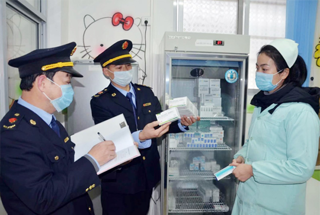 近日,江西省于都縣市場監(jiān)管局對縣疾控中心、縣級醫(yī)院、鄉(xiāng)衛(wèi)生院等醫(yī)療機(jī)構(gòu)進(jìn)行突擊檢查,重點(diǎn)檢查藥品購進(jìn)渠道和運(yùn)輸、儲存、使用等記錄的規(guī)范性、真實(shí)性、完整性;檢查冷藏設(shè)施設(shè)備、“冷鏈運(yùn)輸”等制度的落實(shí)情況。
