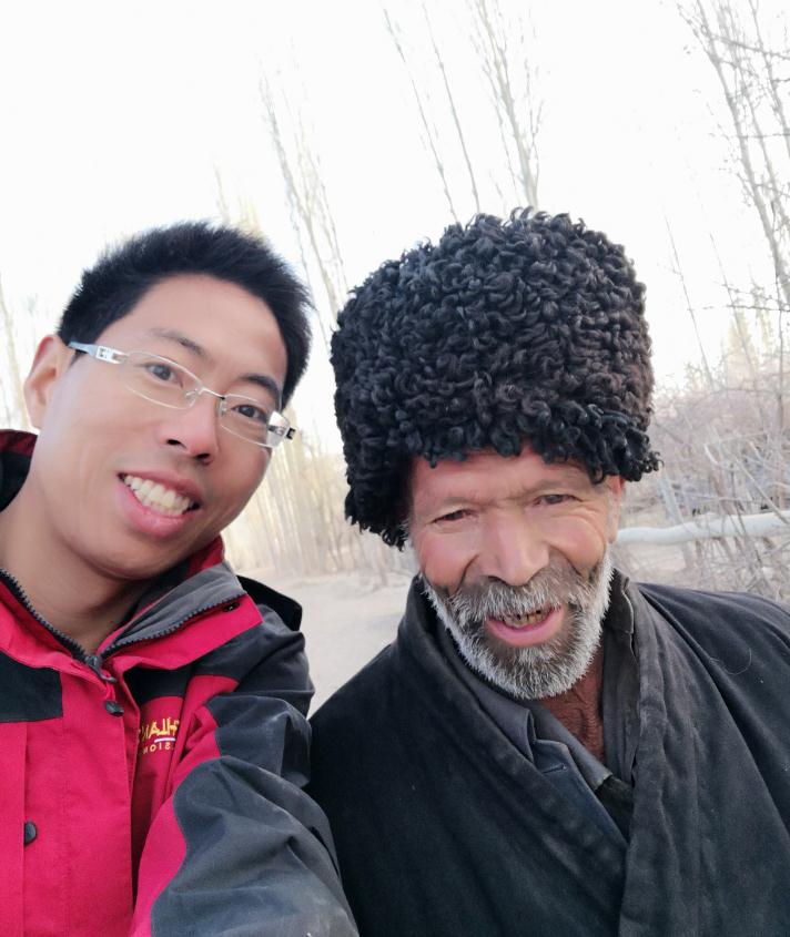 余振喜和維吾爾族五保老人吾麥爾·如蘇力大叔。