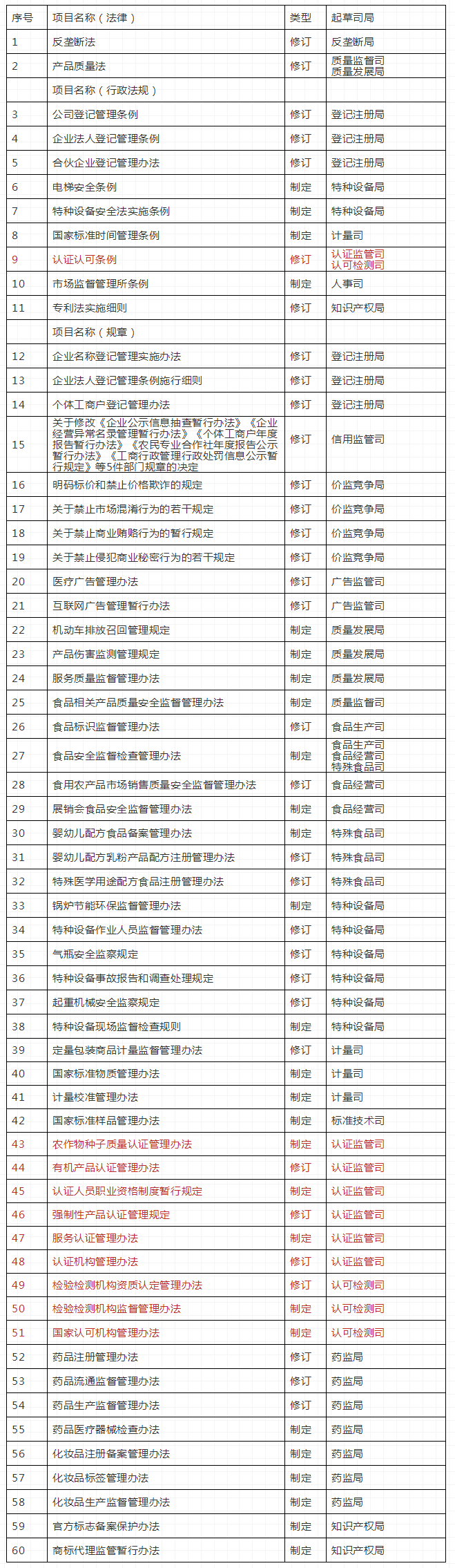 國家市場監(jiān)督管理總局2019年立法工作計劃