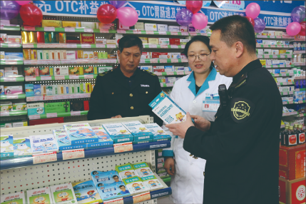 榮成市市場監(jiān)管局執(zhí)法人員在天鵝湖景區(qū)內(nèi)的一家藥店檢查。孫彥 攝