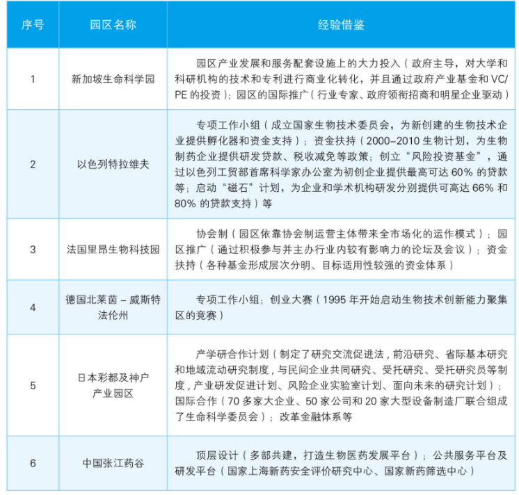 政府驅(qū)動類主要包括新加坡啟奧生命科學(xué)園、以色列特拉維夫、法國里昂生物科技園、德國北萊茵-威斯特法倫州、日本彩都及神戶園區(qū)、中國張江藥谷等(見表)。