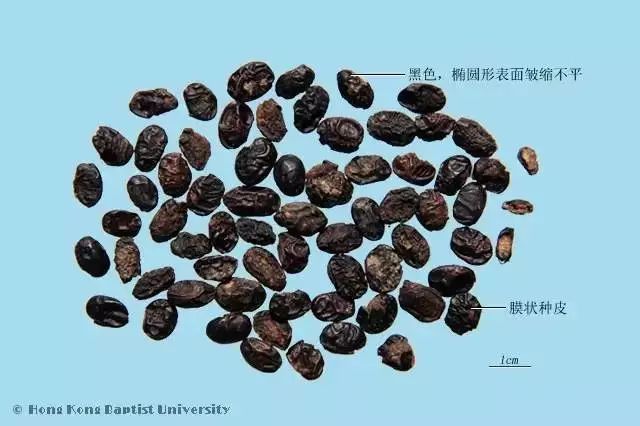 性狀鑒別:本品呈橢圓形,略扁,長0.6~1cm,直徑0.5~0.7cm。表面黑色,皺縮不平。質(zhì)柔軟,斷面棕黑色。氣香,味微甘。