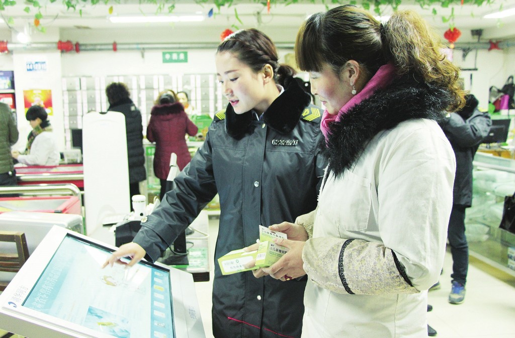 甘肅省禮縣市場監(jiān)管局近期在大型醫(yī)藥超市、藥店設(shè)立藥品便民查詢機48臺,百姓可利用便民查詢機查詢藥品的各種信息。此舉可有效杜絕假藥流入百姓手中,監(jiān)督藥店經(jīng)營行為,保障群眾用藥安全。圖為執(zhí)法人員在演示如何查詢藥品信息。黨海文 攝