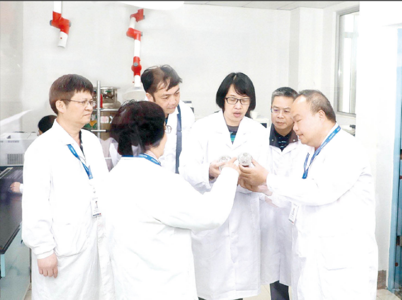 近日,廣西壯族自治區(qū)藥品監(jiān)管局黨組書(shū)記、局長(zhǎng)文東旭一行到廣西區(qū)食品藥品檢驗(yàn)所調(diào)研指導(dǎo)重點(diǎn)實(shí)驗(yàn)室申報(bào)工作,要求著力攻克檢驗(yàn)檢測(cè)中的關(guān)鍵技術(shù)難題,不斷提升自主創(chuàng)新能力,為提高我國(guó)民族藥的質(zhì)量控制水平作出貢獻(xiàn)。圖為文東旭(右三)一行在實(shí)驗(yàn)室查看壯藥藥材樣本。記者 李舒雯 通訊員 程奇 攝