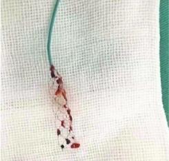醫(yī)生通過血管內(nèi)支架取栓介入手術取出大量血栓