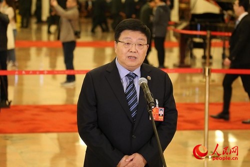 全國(guó)人大代表肖偉在十三屆全國(guó)人大一次會(huì)議的“代表通道”上接受采訪。