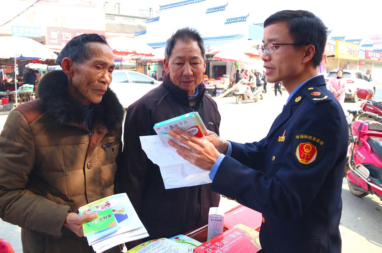 “3·15”來(lái)臨之際,江西省新余市渝水區(qū)市場(chǎng)監(jiān)管局組織執(zhí)法人員深入鄉(xiāng)村開(kāi)展藥品安全知識(shí)宣傳咨詢活動(dòng),以發(fā)放宣傳資料、實(shí)物展示、現(xiàn)場(chǎng)咨詢等方式,向群眾宣傳安全用藥知識(shí)。圖為3月12日該局工作人員在羅坊鎮(zhèn)接受群眾咨詢。廖海金 攝