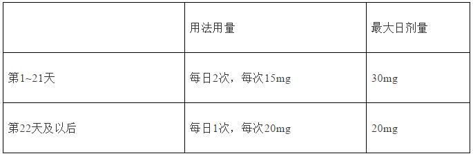 (1)10mg片劑可空腹服用,也可與食物同服;15mg或20mg片劑應與食物同服。