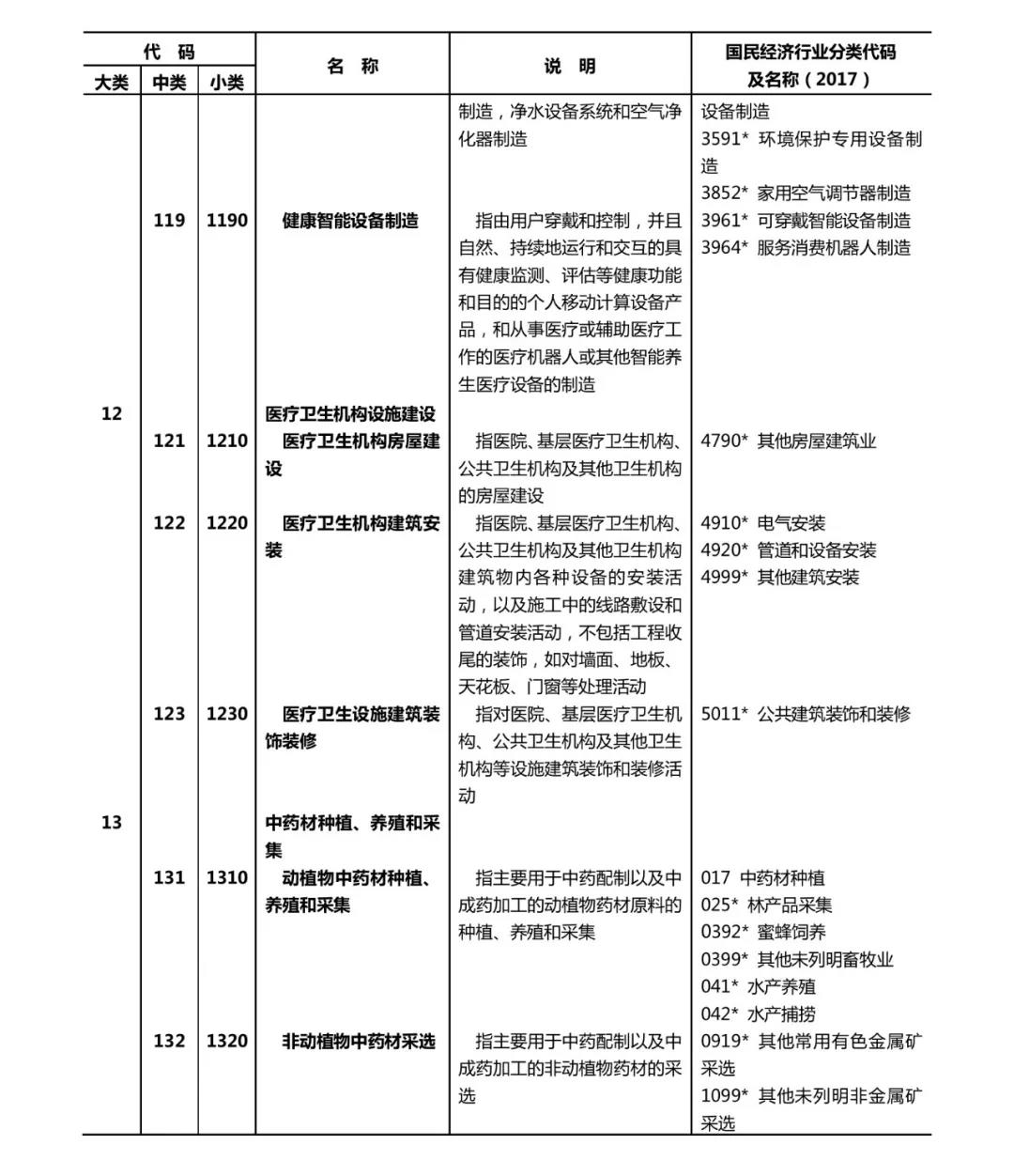 為加快推動健康產(chǎn)業(yè)發(fā)展,科學界定健康產(chǎn)業(yè)的統(tǒng)計范圍,準確反映健康產(chǎn)業(yè)發(fā)展狀況,依據(jù)《“健康中國2030”規(guī)劃綱要》等有關(guān)健康產(chǎn)業(yè)發(fā)展要求,以《國民經(jīng)濟行業(yè)分類》(GB/T 4754-2017)為基礎,制定本分類。