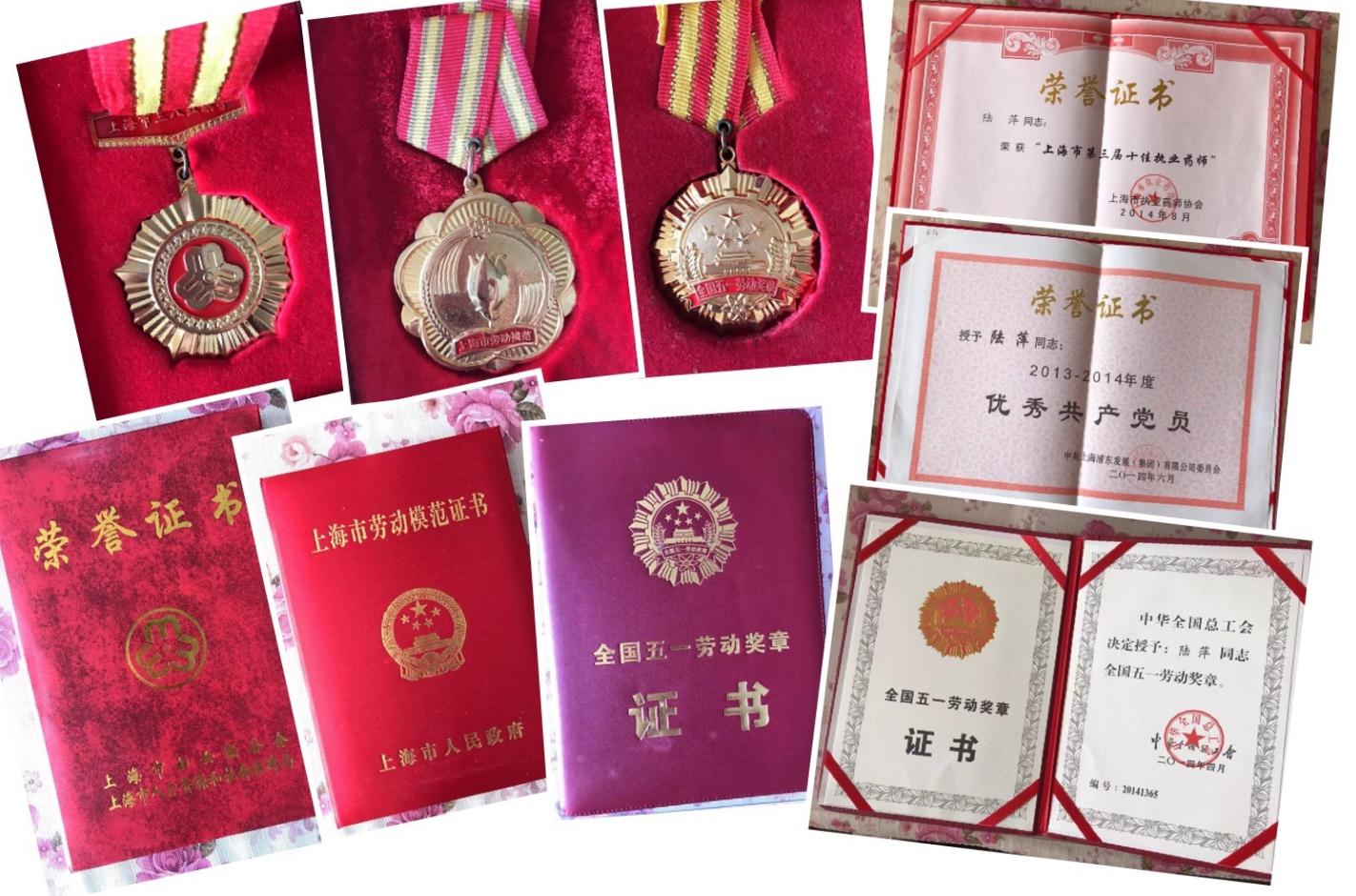2014年,陸萍榮獲全國五一勞動獎(jiǎng)?wù)拢陿s獲“上海市第三屆十佳執(zhí)業(yè)藥師”稱號。2015年,榮獲“上海市勞動模范”稱號。2016年,陸萍所在工作室被授予“浦東新區(qū)勞模創(chuàng)新工作室”稱號。