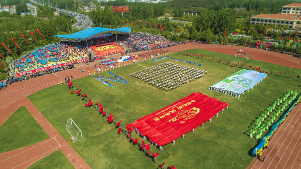 火炬?zhèn)鬟f后,大型團體操表演拉開帷幕。本屆運動會以"我們都在努力奔跑我們都是追夢人"為主題,來自魯南新時代醫(yī)藥公司、新時代幼教中心、集團機關(guān)、厚普公司、貝特公司、集團公司保衛(wèi)部、新時代藥業(yè)保衛(wèi)部、新時代藥業(yè)的1323名演員,分別表演了《千億榮耀,盎然綻放》《成長在魯南的陽光下》《把夢想攥在手上》《向著偉大夢想》《讓夢想點亮新時代》和《我們都是追夢人》大型團體操。本次開幕式在團體操中間環(huán)節(jié)創(chuàng)新加入了航模表演《追夢》。團體操表演結(jié)束后,田徑比賽正式開始。比賽除田賽、徑賽外,還有跳大繩、拔河等趣味賽等共30多個項目,8000多名運動員參與項目角逐。