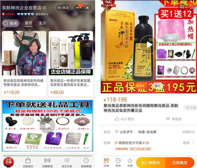 值得關(guān)注的是,染發(fā)、祛斑(美白)類化妝品屬于特殊用途化妝品,應(yīng)經(jīng)國家藥監(jiān)局批準、取得特殊用途化妝品批準文號后方可上市銷售,消費者在選購特殊用途化妝品時,要查看該產(chǎn)品是否標識特殊用途化妝品批準文號。而記者在京東網(wǎng)頁檢索“聚尚美品茶麩神洗”發(fā)現(xiàn),弘攀個護專營店、科陽化妝品專營店等店鋪在銷售相關(guān)品名、具有染發(fā)功能的產(chǎn)品時,并未在產(chǎn)品參數(shù)和規(guī)格包裝的信息中標出產(chǎn)品批準文號。