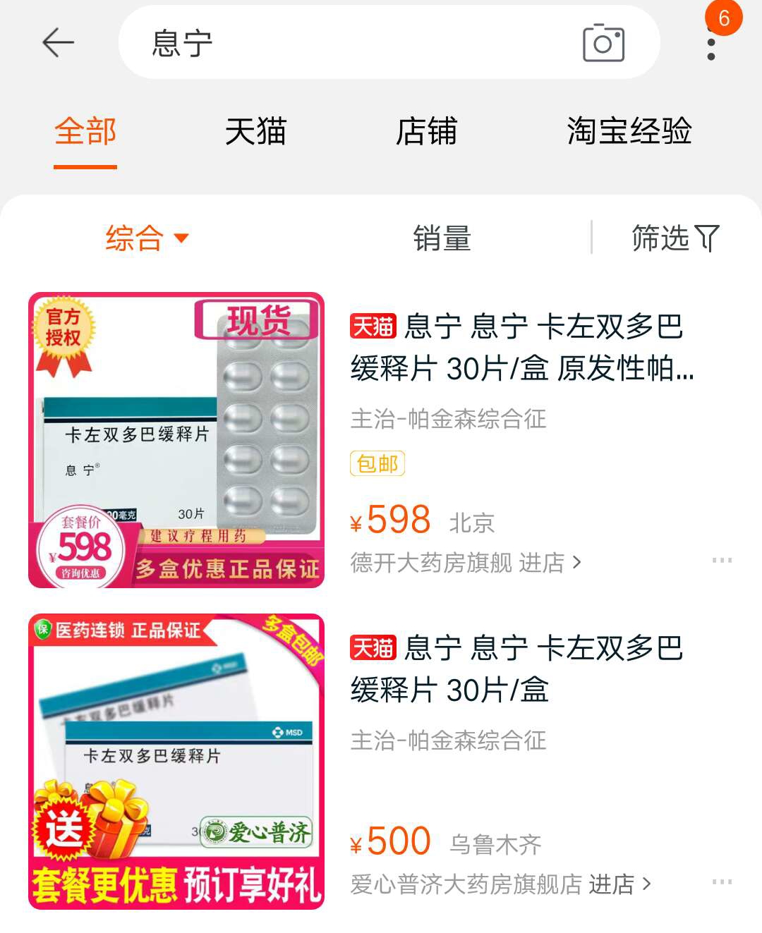 值得關(guān)注的還有藥價(jià)上漲的現(xiàn)象。4月22日,有患者家屬在百度貼吧發(fā)文,說“淘寶太貴了,我爸需要息寧。”記者在淘寶網(wǎng)搜索發(fā)現(xiàn),僅兩家藥店在售此藥,但售價(jià)在500元以上,相比50~70元的正常價(jià)格漲了近10倍。4月29日,記者詢問時(shí),德開大藥房旗艦店的息寧價(jià)格為598一盒,店鋪客服表示有貨,頁面所示為最低價(jià)格。另一家愛心普濟(jì)大藥房旗艦店的藥價(jià)為500一盒,但客服表示沒有現(xiàn)貨,顧客需先提交預(yù)定,到貨后店鋪客服會(huì)留言通知,但“到貨時(shí)間不敢保證”。
