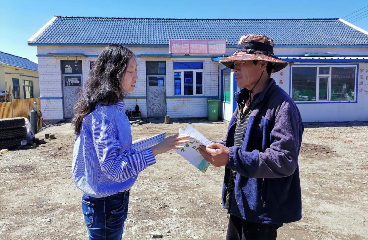 圖為吉林省藥監(jiān)局工作人員向村民發(fā)放用藥安全科普手冊(cè)。 時(shí)磊/攝
