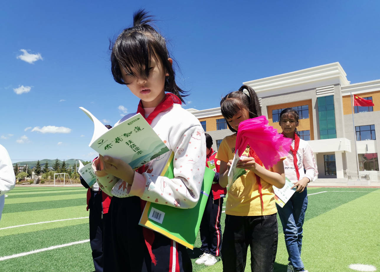 圖為汪清縣雞冠村小學(xué)學(xué)生正在認(rèn)真閱讀《你“藥”知道 扶貧讀本》。 時(shí)磊/攝