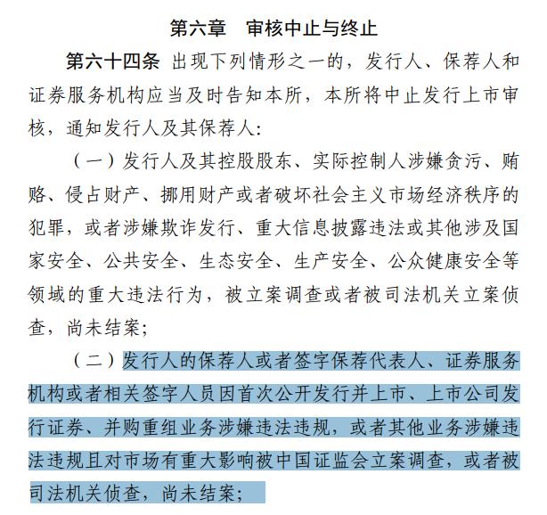 根據(jù)《上海證券交易所科創(chuàng)板股票發(fā)行上市審核規(guī)則》,出現(xiàn)包括“發(fā)行人的保薦人或者簽字保薦代表人、證券服務(wù)機構(gòu)或者相關(guān)簽字人員因首次公開發(fā)行并上市、上市公司發(fā)行證券、并購重組業(yè)務(wù)涉嫌違法違規(guī),或者其他業(yè)務(wù)涉嫌違法違規(guī)且對市場有重大影響被中國證監(jiān)會立案調(diào)查,或者被司法機關(guān)偵查,尚未結(jié)案”在內(nèi)的七種情形之一時,上交所將中止發(fā)行上市審核。而上交所5月24日中止審核的企業(yè)中有3家會計師事務(wù)所均為正中珠江會計師事務(wù)所。