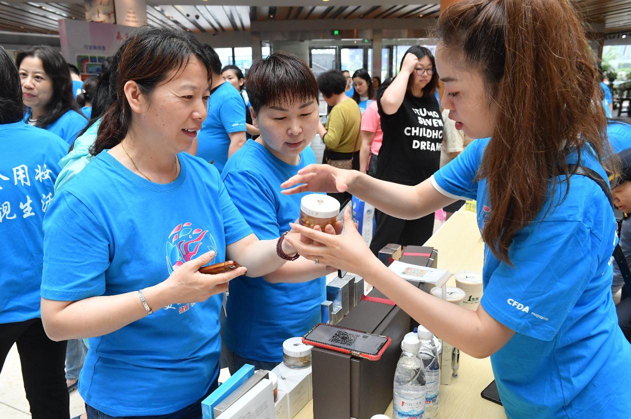 在《中國食品藥品監(jiān)管》雜志社設(shè)置的展臺(tái)前,記者看到圍觀市民都專心致志地盯著手機(jī)頁面在答題。原來大家都是被化妝品安全科普知識(shí)有獎(jiǎng)答題活動(dòng)吸引而來?!吨袊称匪幤繁O(jiān)管》雜志社以“化妝品安全科普知識(shí)”掃碼答題贏獎(jiǎng)品的形式,進(jìn)行化妝品相關(guān)科普宣傳。
