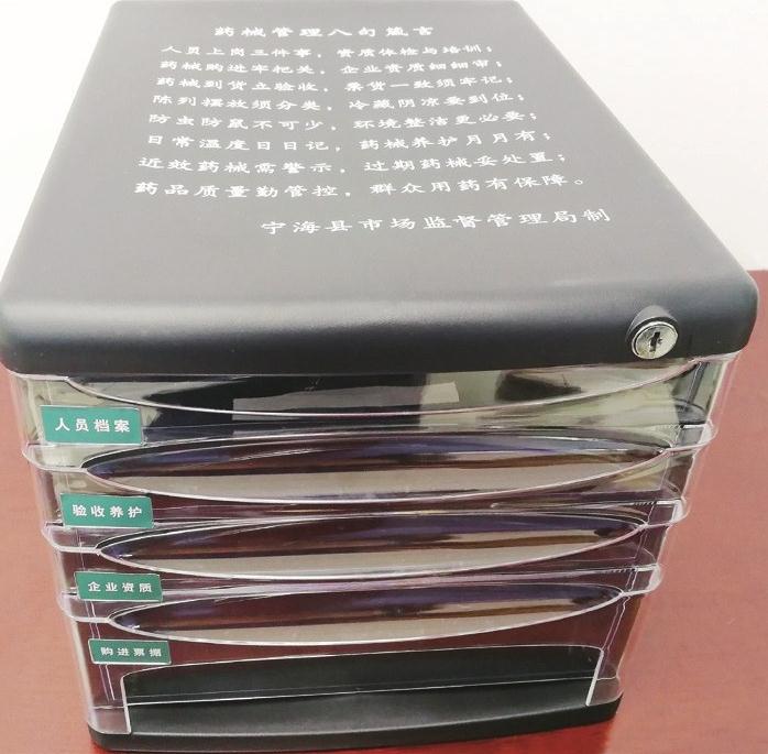 “藥械購銷票據(jù)、購進企業(yè)資質(zhì)材料是各家醫(yī)療機構(gòu)都必須保存的,因此我們就在臺賬盒上動腦筋?!睋?jù)寧海縣市場監(jiān)管局藥械監(jiān)管所所長江慧琴介紹,該所統(tǒng)一制作了500個臺賬盒,將“八句箴言”印在盒上,免費發(fā)放給轄區(qū)內(nèi)基層醫(yī)療機構(gòu),強化相關(guān)負責(zé)人和工作人員的責(zé)任意識和藥械安全管理能力。