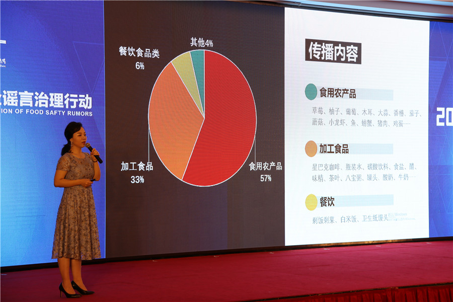 中國健康傳媒集團天創(chuàng)科技信息技術(shù)有限公司副總經(jīng)理陳培嬋發(fā)布了《2018年食品安全謠言治理報告》。記者蔣守福 攝