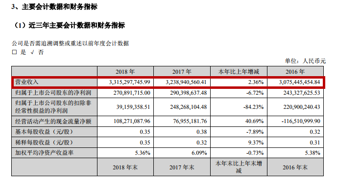 今年4月太安堂發(fā)布了2018年的年報(bào),數(shù)據(jù)顯示,2018年公司實(shí)現(xiàn)營(yíng)收33.15億元,同比增加2.36%;凈利潤(rùn)2.71億元,同比減少6.72%;歸屬于上市公司股東的扣除非經(jīng)常性損益的凈利潤(rùn)為3915.94萬(wàn)元,同比下降84.23%。