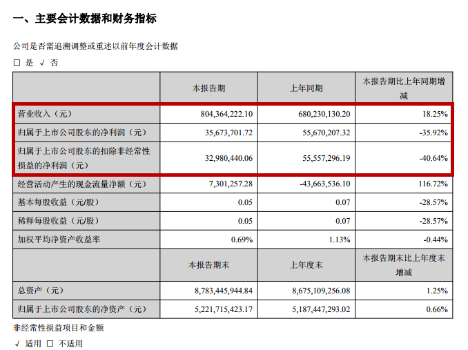 中國(guó)食品藥品網(wǎng)訊(記者 郭婷) 近日,廣東太安堂藥業(yè)股份有限公司(002433.SZ,以下簡(jiǎn)稱(chēng)太安堂)發(fā)布了2019年第一季度報(bào)告:2019年1~3月,其營(yíng)業(yè)收入8.04億元,同比增長(zhǎng)18.25%;歸屬于上市公司股東的凈利潤(rùn)3567.37萬(wàn)元,同比下降35.92%;歸屬于上市公司股東的扣除非經(jīng)常性損益的凈利潤(rùn)3298.04萬(wàn)元,同比下降40.64%。