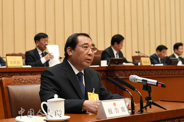 4月20日上午,十三屆全國人大常委會(huì)第十次會(huì)議舉行第一次全體會(huì)議。全國人大憲法和法律委員會(huì)副主任委員叢斌作關(guān)于《中華人民共和國藥品管理法(修正草案)》修改情況的匯報(bào)。(中國人大網(wǎng) 李杰攝)