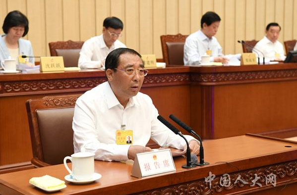 ????8月22日上午,十三屆全國人大常委會第十二次會議聽取全國人大憲法和法律委員會副主任委員叢斌作關(guān)于《中華人民共和國藥品管理法(修訂草案)》審議結(jié)果的報告。(中國人大網(wǎng)全媒體記者?于浩?李杰)