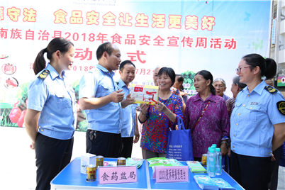 7月17日,廣西壯族自治區(qū)環(huán)江毛南族自治縣召開主題為“尚德守法 食品安全讓生活更美好”的2018年食品安全宣傳周活動。