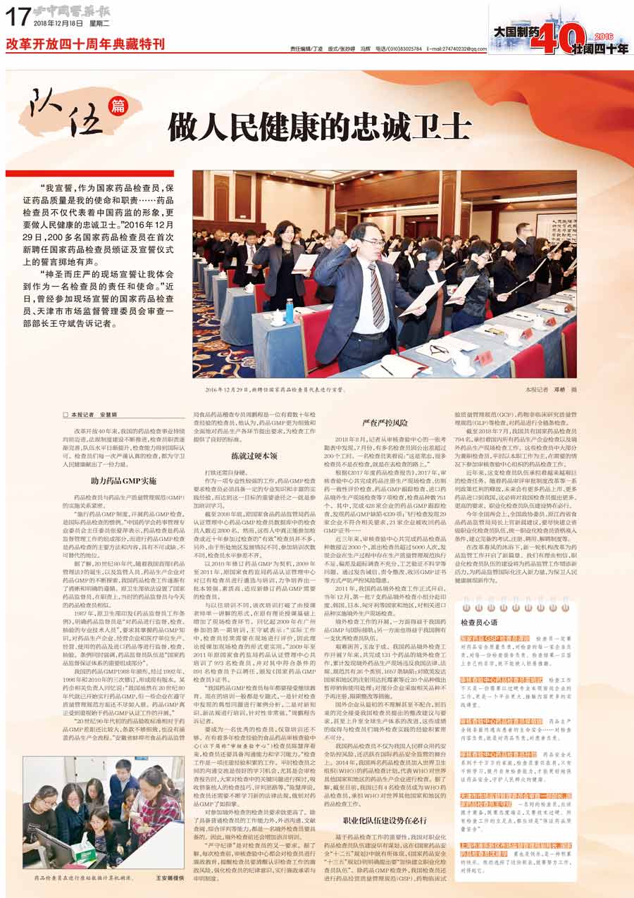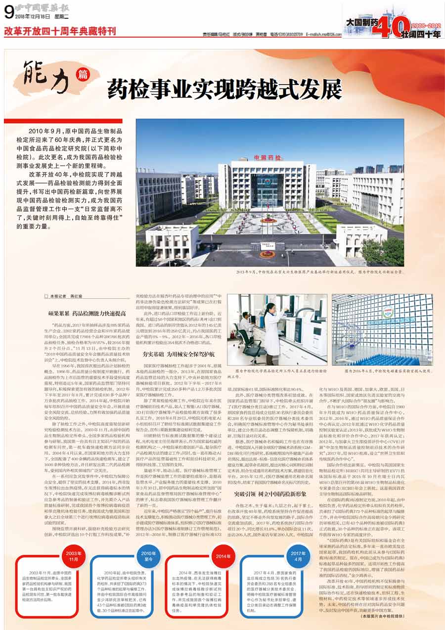 改革開放40年,中檢院實現(xiàn)了跨越式發(fā)展——藥品檢驗檢測能力得到全面提升,書寫出中國藥檢新篇章,向世界展現(xiàn)中國藥品檢驗檢測實力,成為我國藥品監(jiān)督管理工作中一支"日常監(jiān)督離不了,關(guān)鍵時刻用得上,自始至終靠得住"的重要力量。