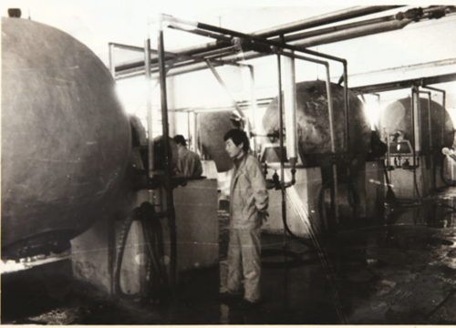 1977年,東阿阿膠人獨立研制第一臺蒸球化皮機。