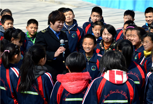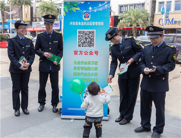 老大娘湊近假劣藥品圖片展板,想看個明明白白。