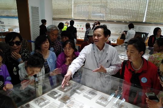 “阿姨,玻尿酸里面有尿嗎?”“大人服用的藥品可以給小朋友服用嗎?”……一群天真的孩子圍在講解員邱婧周圍爭先恐后地問個不停。