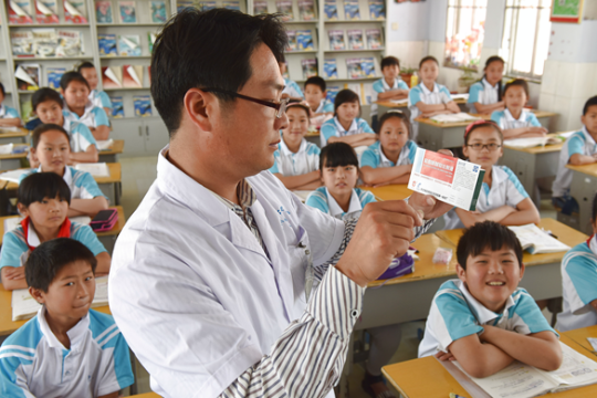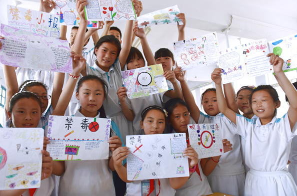 2019年6月24日,江蘇省東海縣黃川鎮(zhèn)在開展禁毒宣傳進(jìn)校園教育宣傳活動。