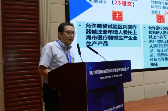 上海市藥監(jiān)局醫(yī)療器械注冊處稽查專員林峰作題為“深化改革促發(fā)展探索醫(yī)療器械注冊人制度試點”的主題發(fā)言。
