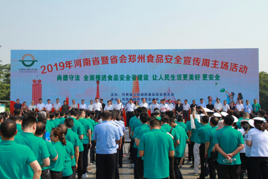 6月18日上午,烈日炎炎,以“尚德守法 全面推進(jìn)食品安全省建設(shè) 讓人民生活更美好更安全”為主題的2019年河南省暨省會鄭州食品安全宣傳周主場活動在鄭州市鄭東新區(qū)如意湖文化廣場隆重舉行。